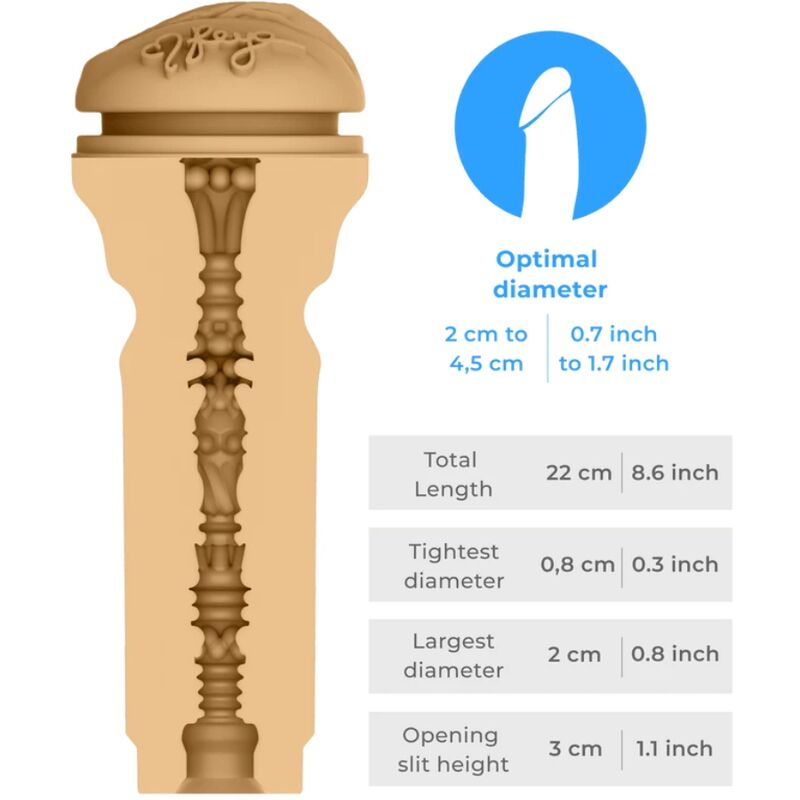 Το εσωτερικό sleeve είναι φτιαγμένο από μαλακό TPE με υφή που προσφέρει ρεαλιστική αίσθηση, ενώ το εξωτερικό περίβλημα από ABS/PC εξασφαλίζει αντοχή και κομψό φινίρισμα. Η συλλεκτική αυτή έκδοση είναι σχεδιασμένη για να ξεχωρίζει τόσο σε ποιότητα όσο και σε εμφάνιση.